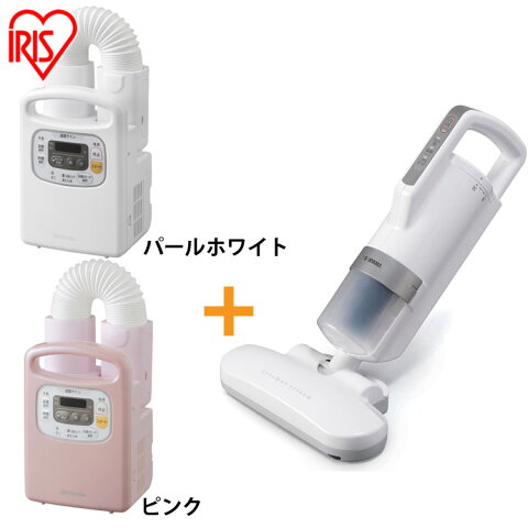 【ふとん乾燥機カラリエ タイマー付 FK-C3】●電源AC100V(50/60Hz共用)●消費電力560W●タイマー15・30・45・60・75・90・120・180分●コードの長さ約2m●安全装置温度センサーサーモスタット温度ヒューズ●商品サイズ(cm)幅約16×奥行約14×高さ約36●重量約1.8kg●材質ABS樹脂、ポリプロピレン●付属品くつ乾燥アタッチメント●カラーパールホワイト・ピンク【強力ふとんクリーナー ダークシルバー IC-FAC3】●使用時サイズ(cm)幅約25×奥行約45.9×高さ約21.2●収納時サイズ(cm)幅約25×奥行約14.4×高さ約40.3●超ワイドたたきパッド幅約20cm●質量約1.6kg(電源コード含む)●電源AC100V(50/60Hz)●消費電力400W●コードの長さ約4m●振動回数毎分約6500回●集塵容量約0.2L●セット内容掃除機本体、集塵フィルター(本体にセット済)、排気フィルター(本体にセット済)、使い捨てフィルター25枚(1枚は本体にセット済) (検索用:布団・乾燥・ベッド・かんそう・家電・乾燥機・梅雨対策・湿気・除湿・ふとん・そうじ・掃除機・ハンディ・掃除機・そうじき・吸引・クリーナー・・・アイリスオーヤマ)★