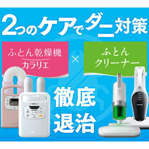 【ふとん乾燥機カラリエ タイマー付 FK-C3】●電源AC100V(50/60Hz共用)●消費電力560W●タイマー15・30・45・60・75・90・120・180分●コードの長さ約2m●安全装置温度センサーサーモスタット温度ヒューズ●商品サイズ(cm)幅約16×奥行約14×高さ約36●重量約1.8kg●材質ABS樹脂、ポリプロピレン●付属品くつ乾燥アタッチメント●カラーパールホワイト・ピンク【強力ふとんクリーナー ダークシルバー IC-FAC3】●使用時サイズ(cm)幅約25×奥行約45.9×高さ約21.2●収納時サイズ(cm)幅約25×奥行約14.4×高さ約40.3●超ワイドたたきパッド幅約20cm●質量約1.6kg(電源コード含む)●電源AC100V(50/60Hz)●消費電力400W●コードの長さ約4m●振動回数毎分約6500回●集塵容量約0.2L●セット内容掃除機本体、集塵フィルター(本体にセット済)、排気フィルター(本体にセット済)、使い捨てフィルター25枚(1枚は本体にセット済)(検索用:布団 乾燥 ベッド かんそう 家電 乾燥機 梅雨対策 湿気 除湿 ふとん そうじ 掃除機 ハンディ 掃除機 そうじき 吸引 クリーナー )★
